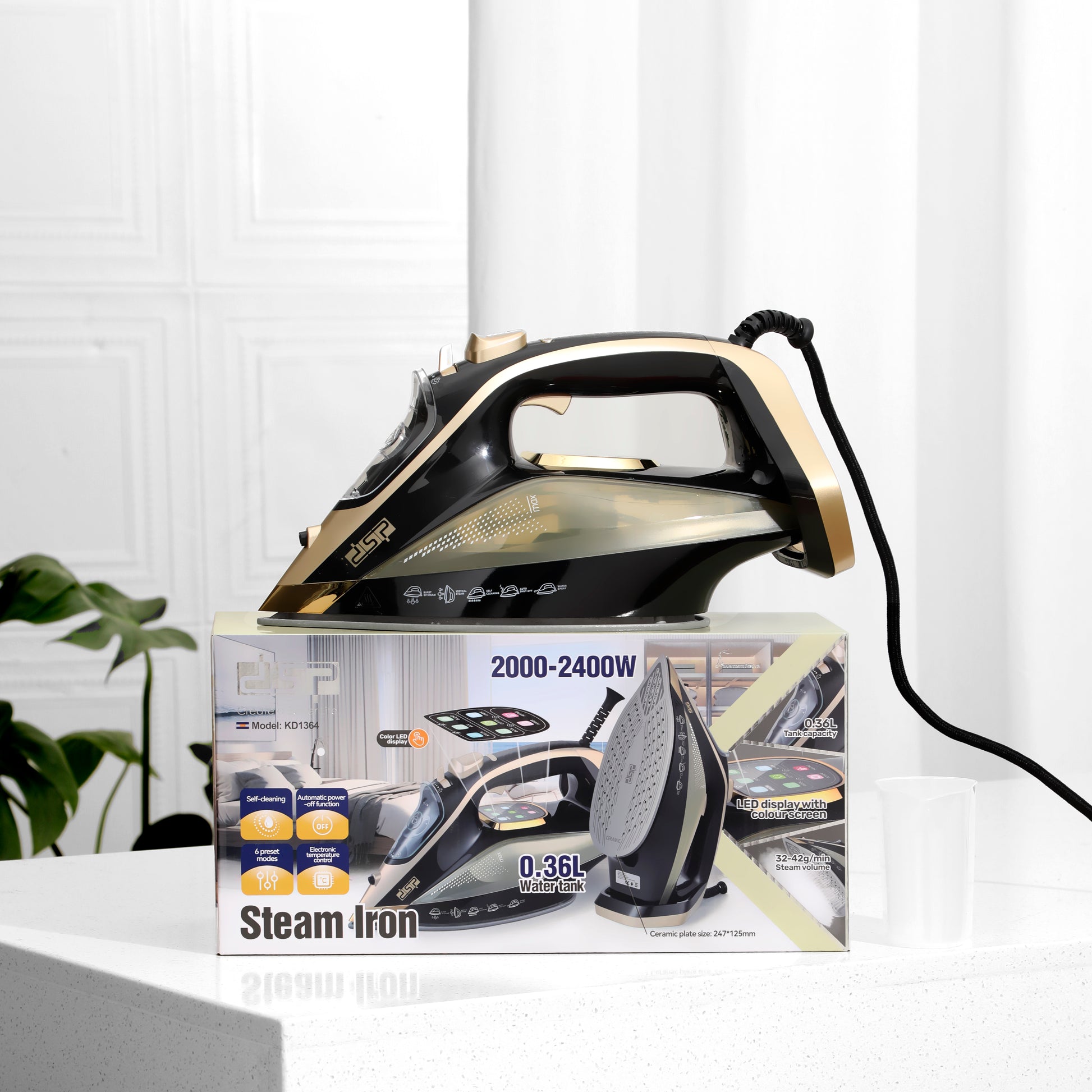 DSP 2400W Steam Iron for Clothes, Ceramic Soleplate, 360ml Tank, 32-42g/min Steam, Spray/Burst/Continuous Steam, Self-Clean, Auto Shut-Off, Retractable Cord, 6 Preset Modes for All Fabrics
