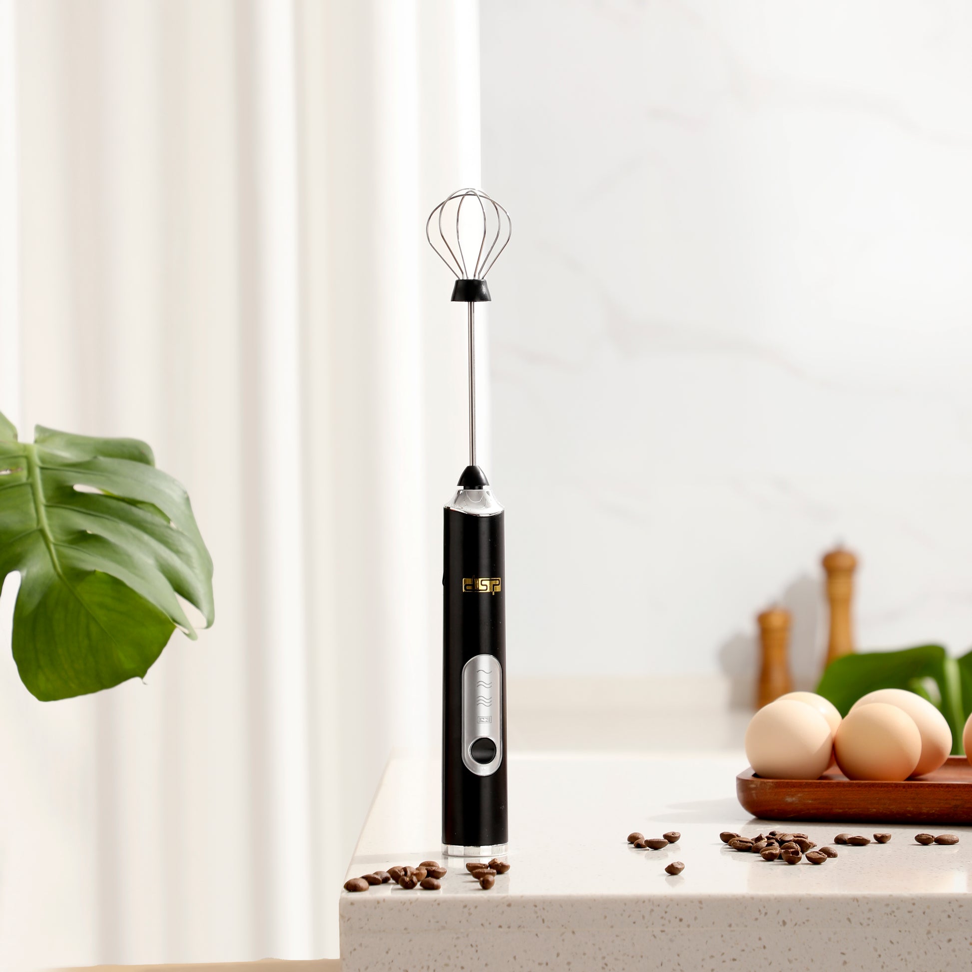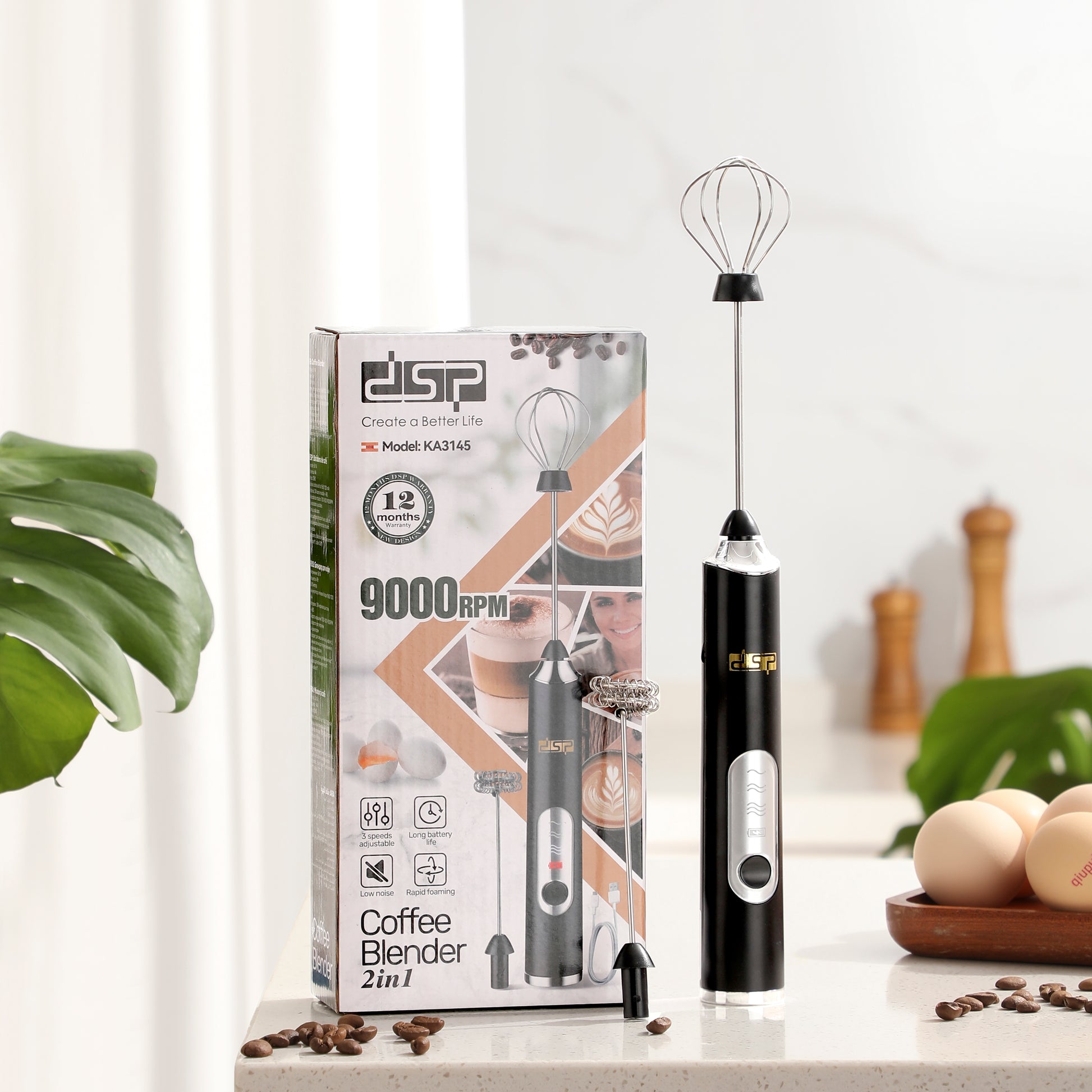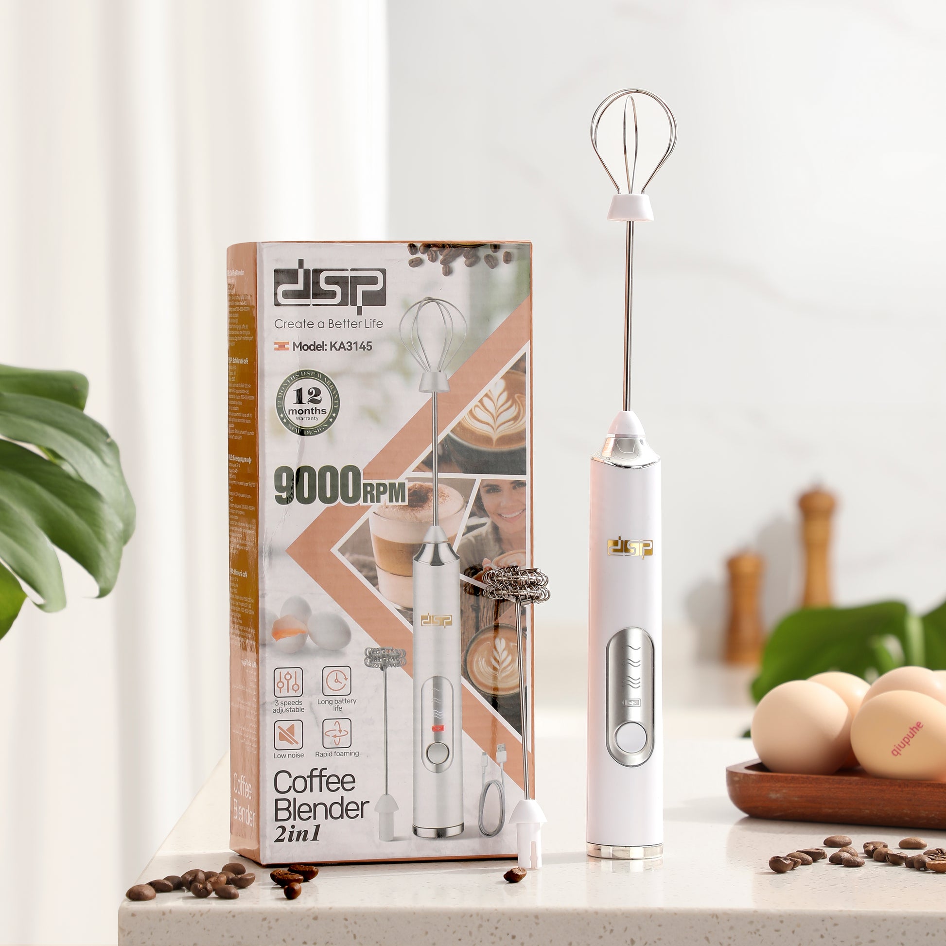 DSP Handheld Electric Milk Frother with 2 Heads, USB Rechargeable Coffee Whisk & Frother Wand, 3 Speeds Adjustable (7000-9000 RPM) for Latte, Cappuccino, Hot Chocolate & Egg Mixing (Black/White)