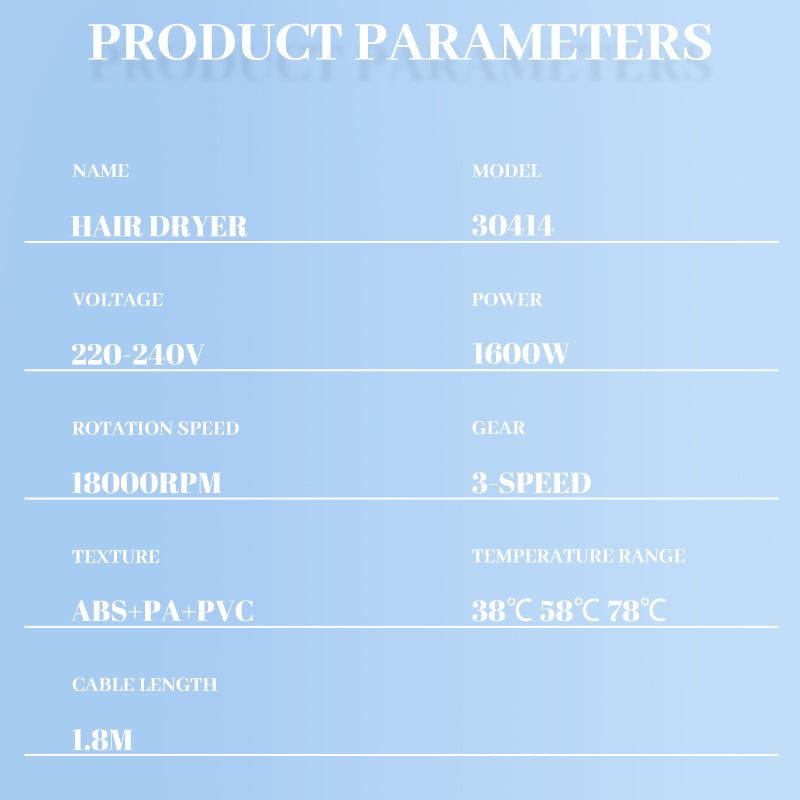 1. Powerful 1600W DC Motor for Fast Drying Equipped with a high-performance DC 385 motor (18000 RPM), this hair dryer delivers strong airflow to dry hair quickly while reducing noise. Ideal for home use, it saves time without compromising efficiency.