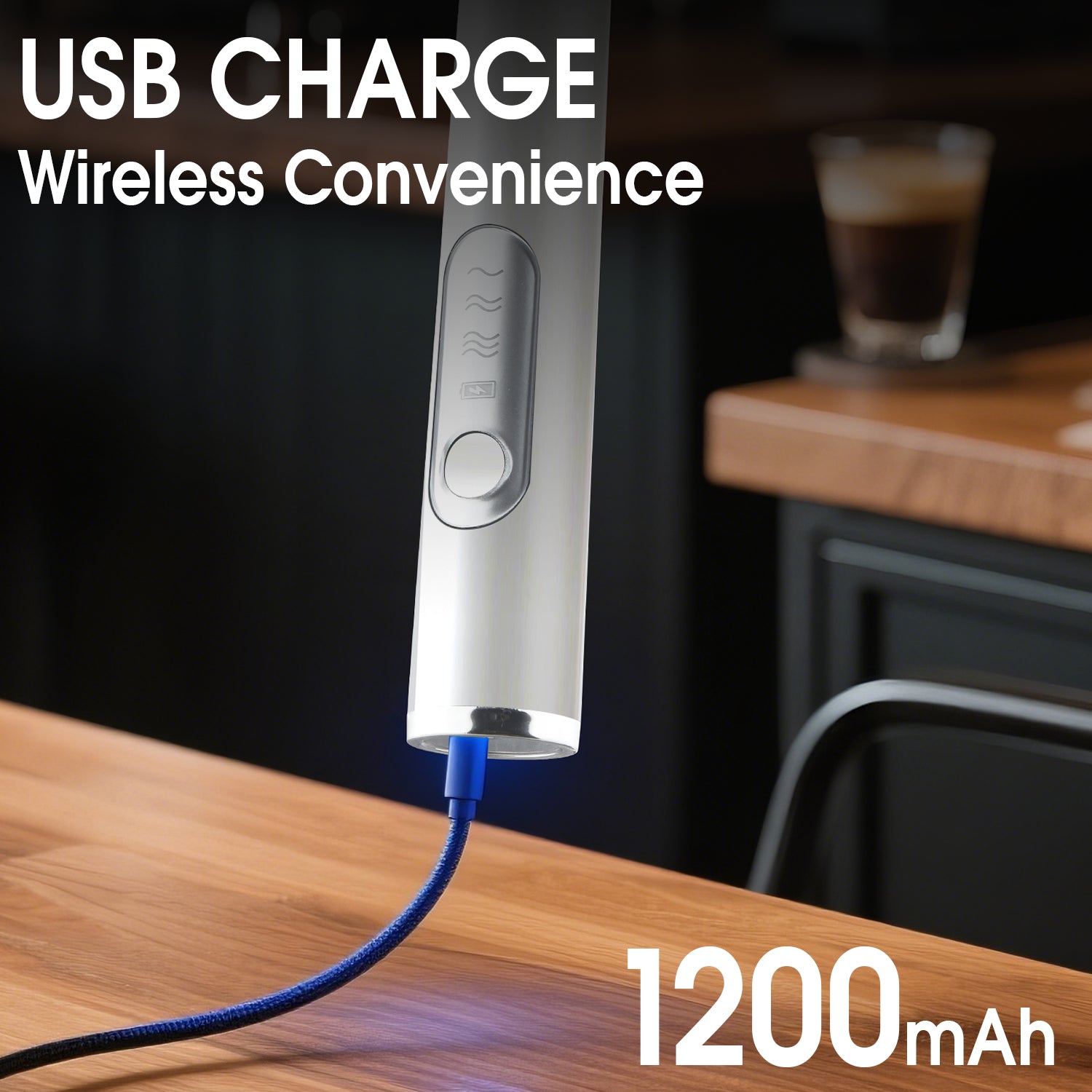 3. 【Smart Battery Indicator & Eco-Friendly USB Charging】 No disposable batteries needed! Our milk frother shows real-time power levels via LED indicator (low/medium/full). The 18650 lithium battery charges via USB cable (included), offering 10-15 uses per charge – eco-conscious and cost-efficient.