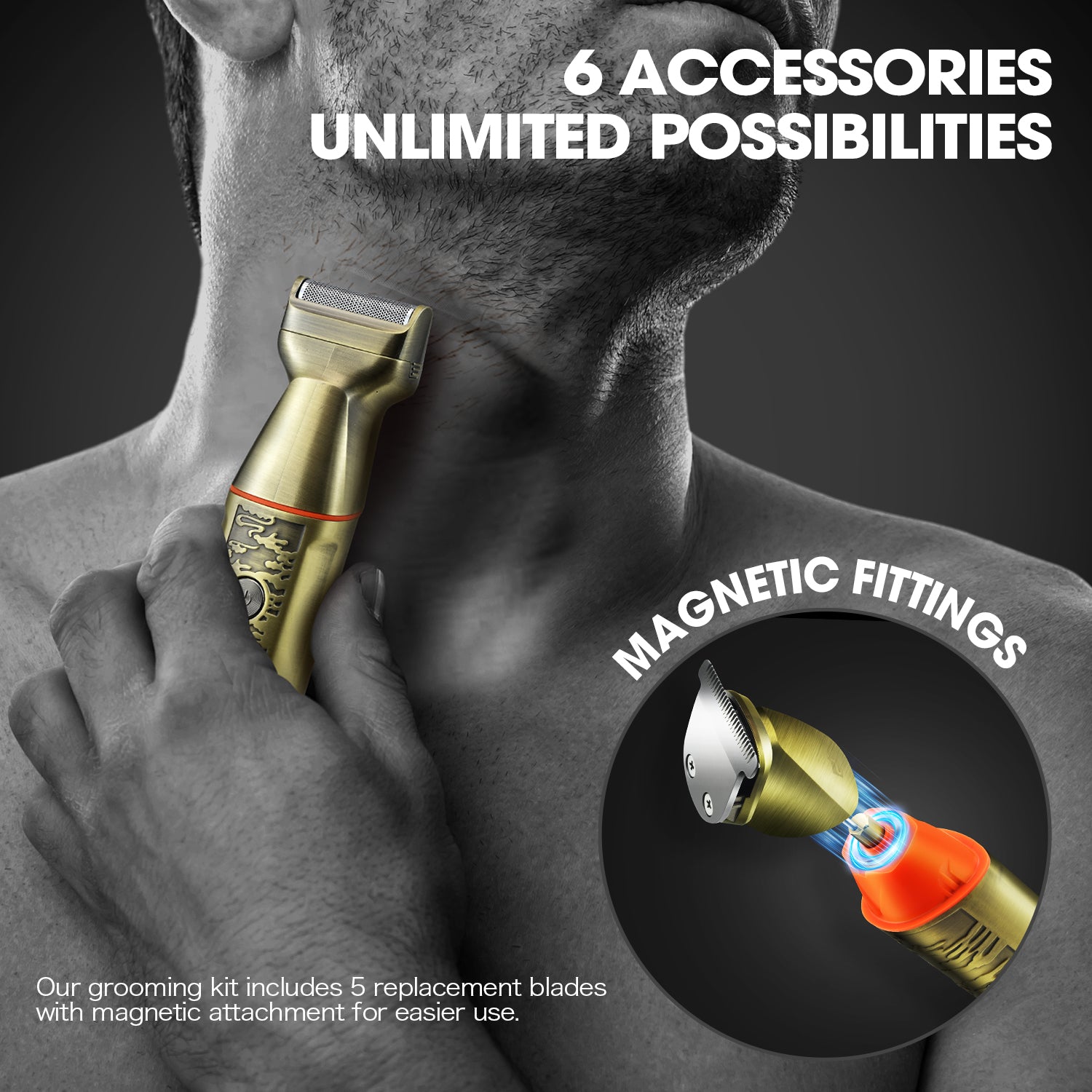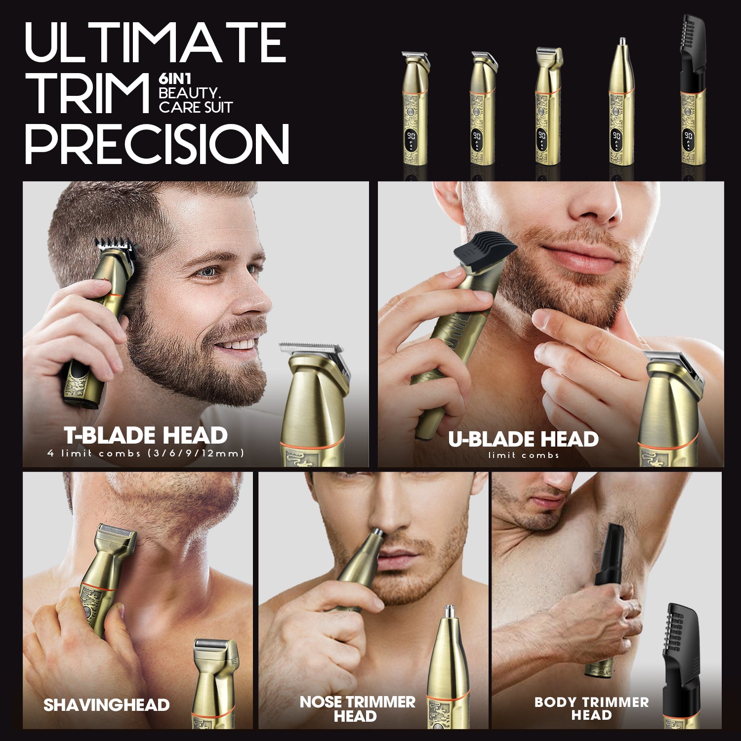 6-in-1 Professional Men's Grooming Kit with 4 Combs, IPX6 Waterproof, 90Min Runtime & LED Display, All-in-One Precision for Beard/Hair/Body Care