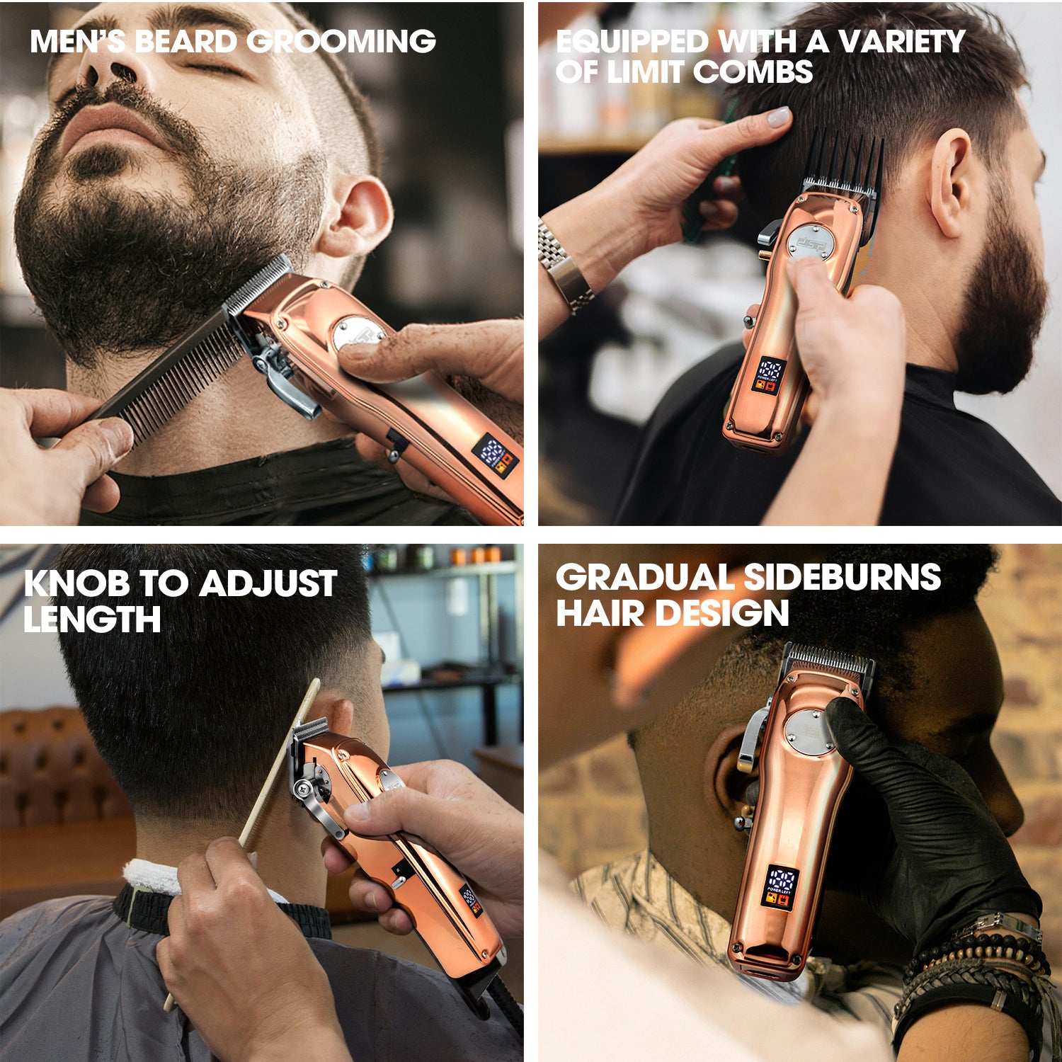 2. Professional-Grade Precision Cutting Equipped with a 6500RPM high-speed motor and durable powder metallurgy blades, this electric hair clipper delivers smooth, tug-free trimming. Includes 8 adjustable combs (1.5-19mm) for versatile styling.