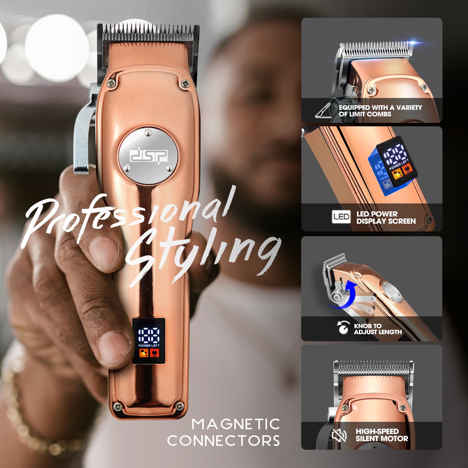 1. Cordless Freedom & Dual Charging Enjoy hassle-free grooming with DSP 91318 cordless hair clipper! Powered by a 2000mAh lithium battery (200min runtime), it supports both wireless charging base and plug-and-play USB charging. Perfect for home or travel use.