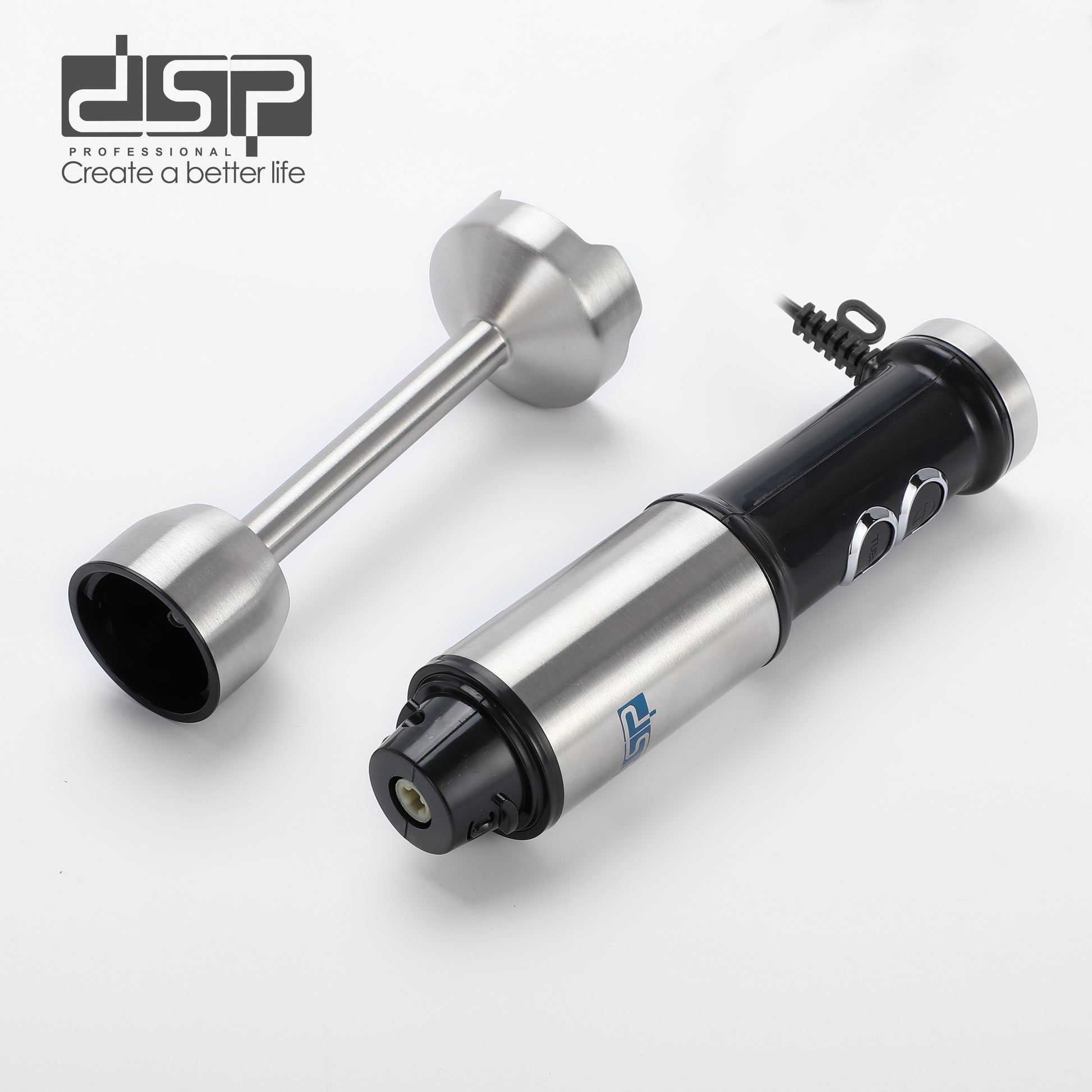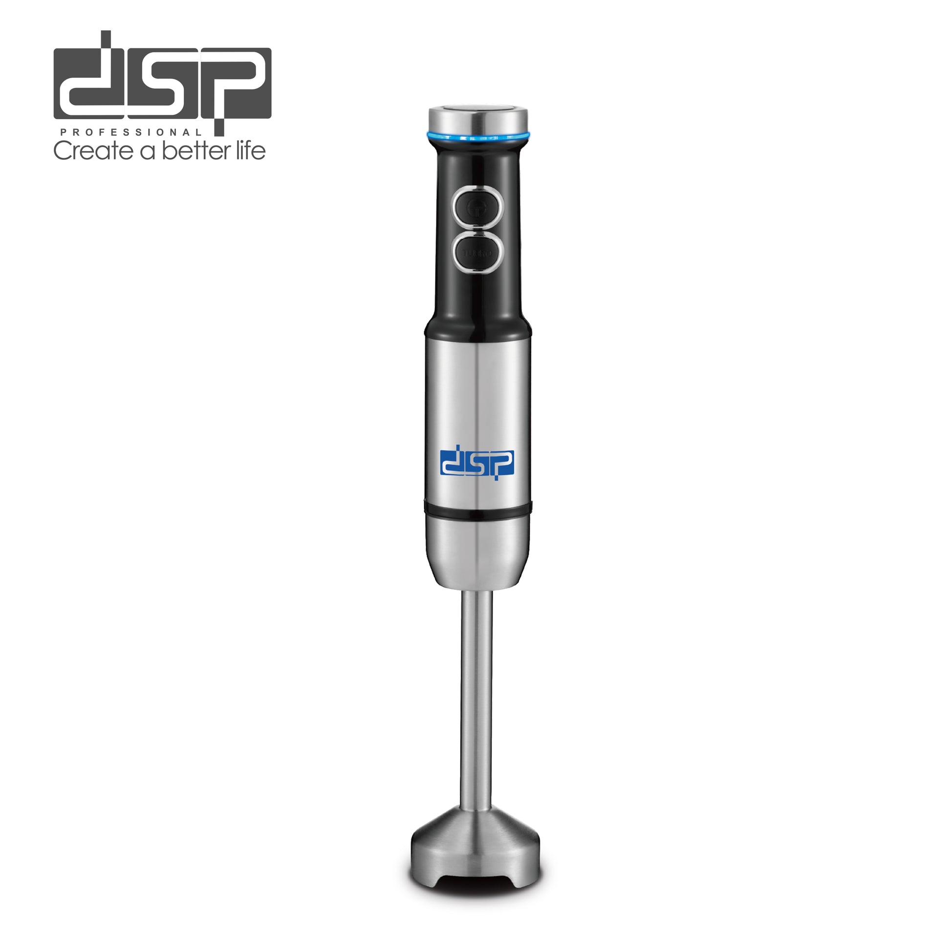 DSP 1500W Immersion Blender Handheld Cordless - Powerful Electric Mixer with Turbo Function, 2-Speed Control & Detachable Stainless Steel Rod, Ideal for Smoothies, Soup, Puree (Blue Light Ring)