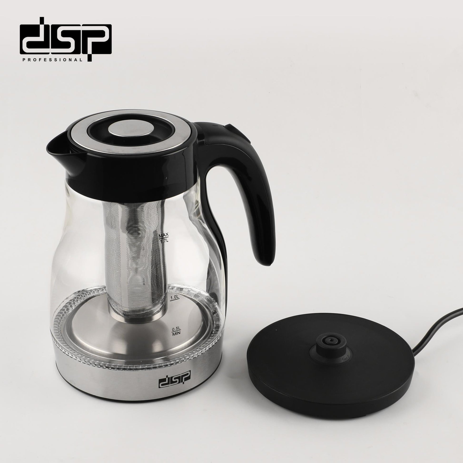 1.Ultra-Fast Boiling – The DSP electric kettle boils water in minutes with 2200W power and a concealed stainless steel heating element, while the blue LED light indicates heating status. Perfect for coffee, tea, or instant meals.