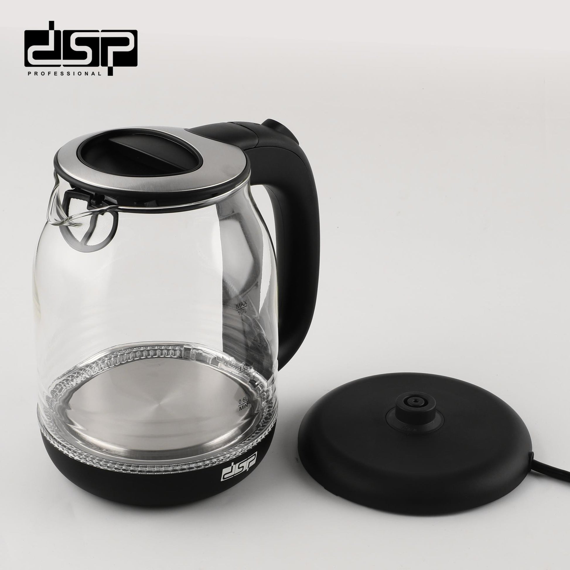 DSP Electric Kettle 1.7L Glass & Steel, Fast Boiling 2200W with Auto Shut-Off, LED Light, 360° Swivel Base – Stainless Steel Heating for Tea & Coffee