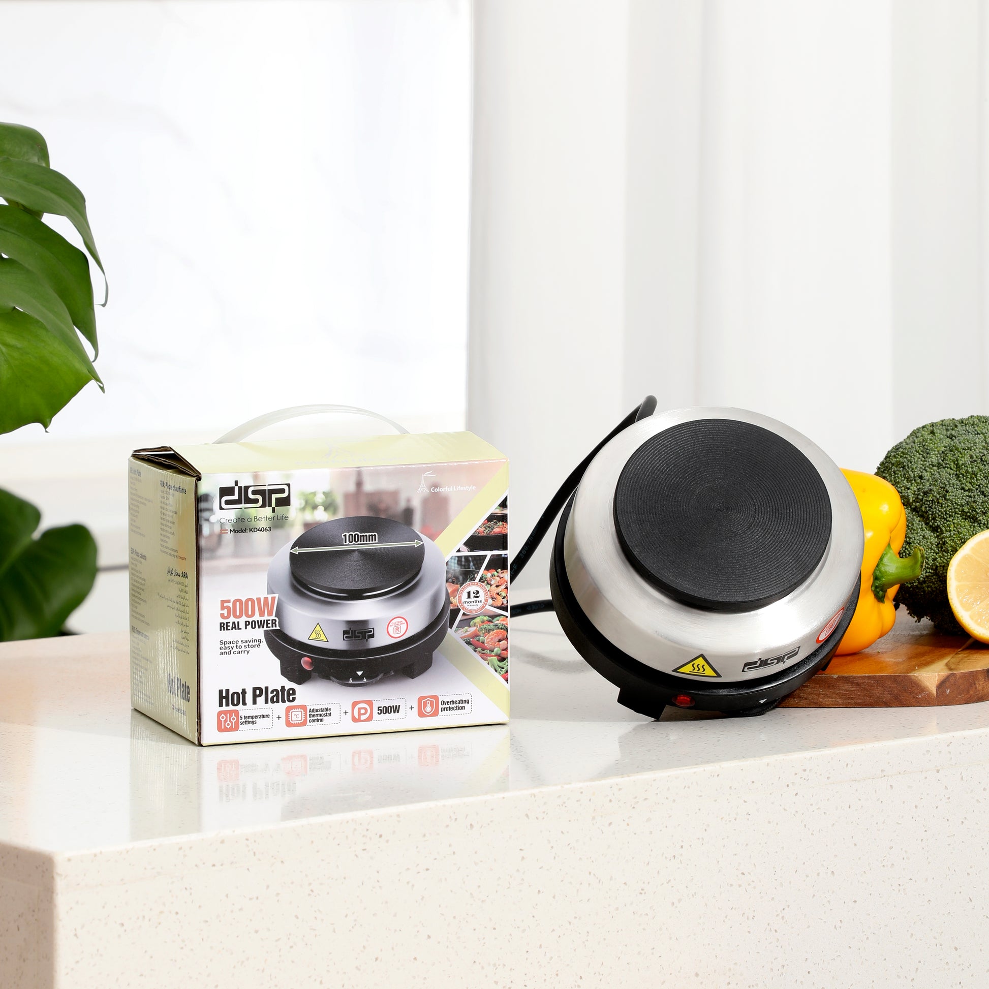 DSP Hot Plate Electric - 500W Single Burner Stove with Adjustable Thermostat, 5 Heat Settings, Overheating Protection, Compact & Portable for Home, Office, Camping (220-240V)