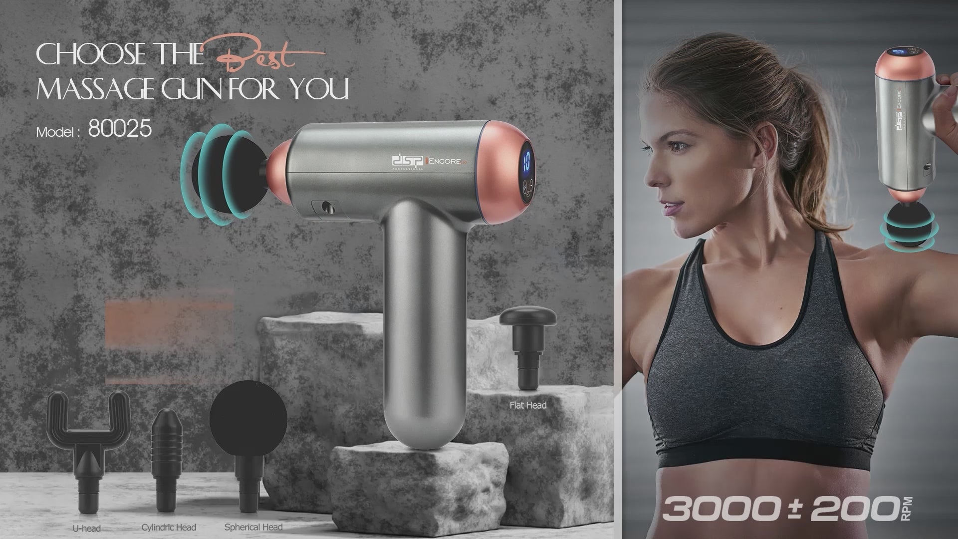 DSP 80025 massage gun delivers 3000±200 RPM powerful percussion to target stiff muscles, improve blood circulation, and speed up recovery after workouts. Perfect for home users seeking deep muscle relaxation.