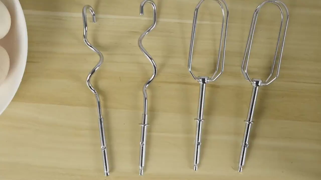 4. Includes 180mm Egg Beaters & Dough Hooks – Comes with dual 180mm attachments (egg beaters + dough hooks) for multitasking. Whip creams or mix cookie dough effortlessly. (Keywords: egg beater mixer, dough hook mixer, mixer accessories)