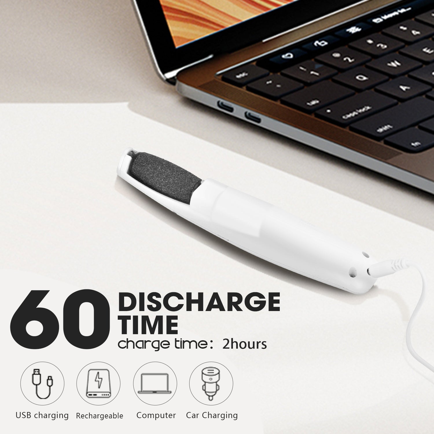 3. Rechargeable & Long-Lasting Equipped with a 14500 lithium battery (600mAh, 3.7V), this foot scrubber offers 1 hour of continuous use after just 2 hours of charging (via USB). No cords needed—perfect for travel or home spa sessions.
